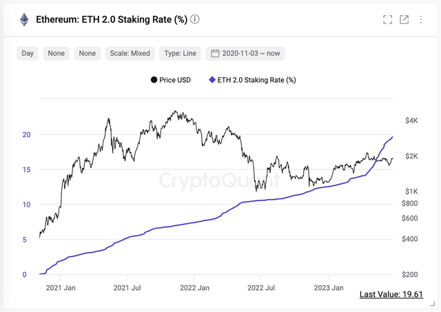 주기영 크립토퀀트 대표가 이더리움(ETH) 스테이킹 비율의 증가세를 가리키며 이더리움이 저평가돼있을 가능성에 무게를 실었다.