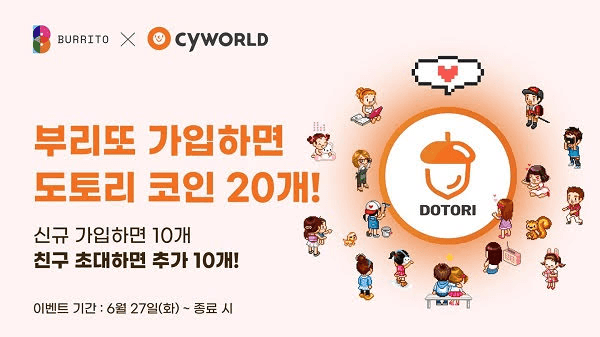 싸이월드는 웹3 디지털 자산 지갑 플랫폼 '빗썸 부리또 월렛'을 운영하는 블록체인 기업 로똔다와 함께 기획한 '친구야 도토리 같이 받을래?' 이벤트를 통해 이날부터 약 220만개의 도토리 토큰을 지급할 예정이다.