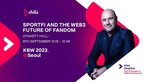 칠리즈는 KBW에 참여해 '스포츠파이(SportFi)와 웹3를 통한 미래의 팬덤 문화'를 주제로 발표할 계획이다. 패널로는 알렉산드레 드레이푸스(Alexandre Dreyfus) 칠리즈 대표와 이탈리아의 전설적인 축구선수 알레산드로 델 피에로(Alessandro Del Piero)가 참석한다.