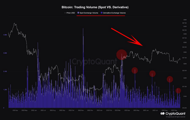 그는 "올해 3월부터 현재까지 비트코인 선물 거래량은 73% 급격한 감소를 보였고, 현물 거래량은 94% 급감했다"고 설명했다.