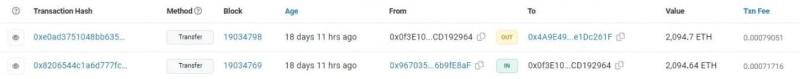 만타 측이 공유한 해당 거래 내역을 블루밍비트가 검토한 결과, 재단은 국내 팀원의 빗썸 계정을 통해 입금한 200만 MANTA를 매도한 후 2094 ETH을 매수했으며, 해당 자금은 그 팀원의 계정에 연결된 개인 메타마스크로 이동한 후 재단의 트레저리 펀드로 송금된 것을 확인할 수 있었다.