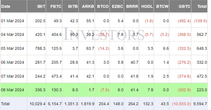 9일 파사이드 인베스터 ETF 자금 유입 데이터에 따르면 지난 8일 비트코인 현물 ETF로 2억2300만달러의 순유입이 발생했다. 이로써 지난 1월 11일부터 현재까지 비트코인 현물 ETF에는 95억9470만달러의 자금이 순유입됐다.