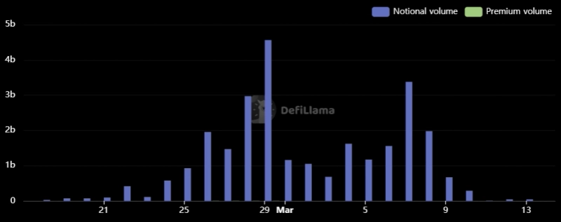 15일(현지시간) 가상자산(암호화폐) 전문 매체 코인데스크에 따르면 최근 에이보에서 일일 거래량이 급등했다 다시 급락하는 현상이 발생했다. 디파이라마 데이터에 따르면 지난 17일 1억달러 였던 에이보의 일일 옵션 거래량은 지난 29일 45억6000만달러로 급등했다가 이주 초 다시 5000만달러 아래로 급락한 것으로 나타났다.