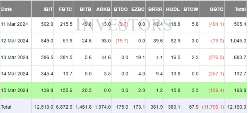 비트코인(BTC) 현물 상장지수펀드(ETF) 자금 흐름 데이터 제공 사이트 파사이드 인베스터에 따르면 15일(현지시간) 10종 비트코인 현물 ETF은 총 1억9880만달러의 순유입을 기록했다. 이로써 지난 1월 11일부터 현재까지 비트코인 현물 ETF는 누적 순유입 약 121억6030만달러를 기록하게 됐다.