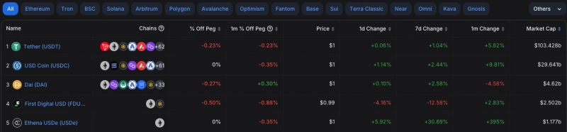 에테나 랩스(Ethena Labs)의 스테이블코인 '에테나 USDe(USDe)'가 스테이블코인 시가총액 5위에 오른 것으로 나타났다.