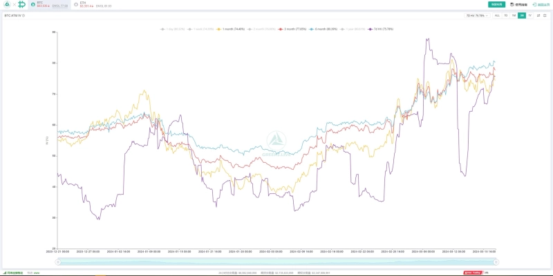 20일 가상자산(암호화폐) 전문 분석 업체 그릭스닷라이브(Greeks.live)의 아담 연구원은 X(옛 트위터)를 통해 "비트코인은 며칠 새 하락세를 보이고 있는 가운데 비트코인의 변동성은 다시 급격히 증가하고 있다"라며 "변동성이 심화할 것이란 시장의 기대감은 더욱 높다"라고 분석했다. 그릭스닷라이브에 따르면 비트코인의 내재변동성은 최근 1년 최고 수준을 기록하고 있다.