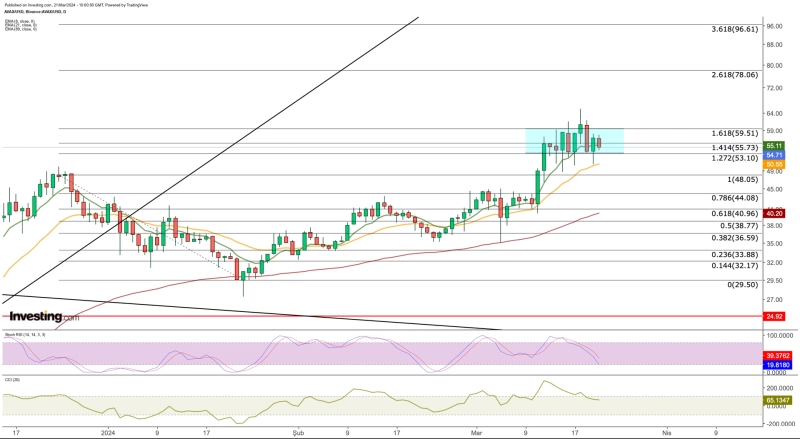 60달러를 돌파하고 이번 주에 53달러 이상으로 마감한다면 다음 목표는 78달러가 될 것이며, 모멘텀에 따라 96달러가 될 수도 있다.