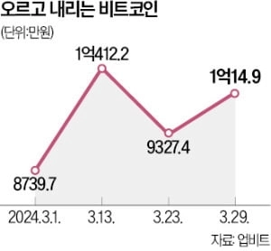 국내 암호화폐 거래소 업비트에 따르면 비트코인은 지난달 11일 처음으로 국내에서 1억원을 돌파했다. 이틀 연속 신고가를 경신한 뒤 9200만원대까지 곤두박질쳤다. 이어 26일에는 1억원을 재차 돌파했다. 글로벌 시장에서는 7만3750달러까지 치솟았다가 6만1000달러대까지 하락했다. 이후 7만달러를 회복했다.
