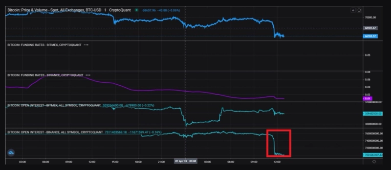 글로벌 가상자산(암호화폐) 거래소 바이낸스 내 미결제 약정(OI) 금액 규모가 급락한 것으로 나타났다.