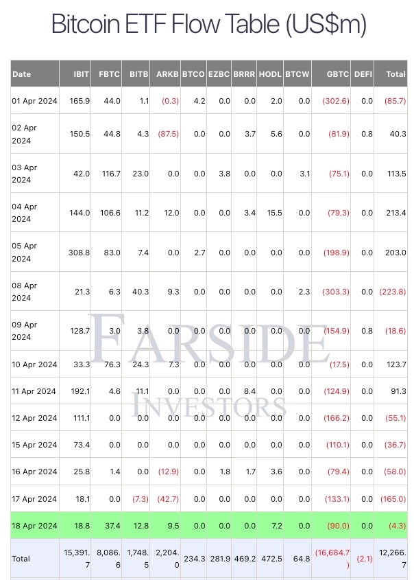 아울러 미국에 상장된 비트코인 현물 ETF의 자금 유입액은 최근 감소세를 보이고 있다. 지난 19일 글로벌 증시·가상자산 투자회사 파사이드 인베스터스에 따르면 미국에 상장된 비트코인 현물 ETF 10개에선 지난 5거래일 연속 순유출이 발생했다. 특히 그레이스케일 GBTC가 보유한 비트코인은 지난 1월 상장 이후 현재까지 50% 넘게 감소한 30만9871 BTC를 나타내고 있다. 지난 17일 가상자산 전문 미디어 더블록은 "비트코인 현물 ETF는 지난달 이후 자금 유입과 유출이 모두 둔화되고 있다"라고 설명했다.