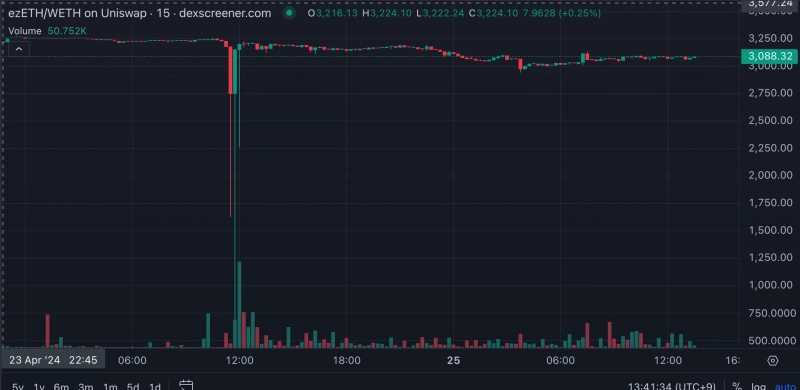마지막으로 디파이 대출 프로토콜 모루포는 전날 5806개의 ezETH토큰이 유출되는 사고를 겪었다. 해당 사고로 ezETH의 가격은 크게 하락해 페깅이 일시적으로 붕괴되기도 했다.