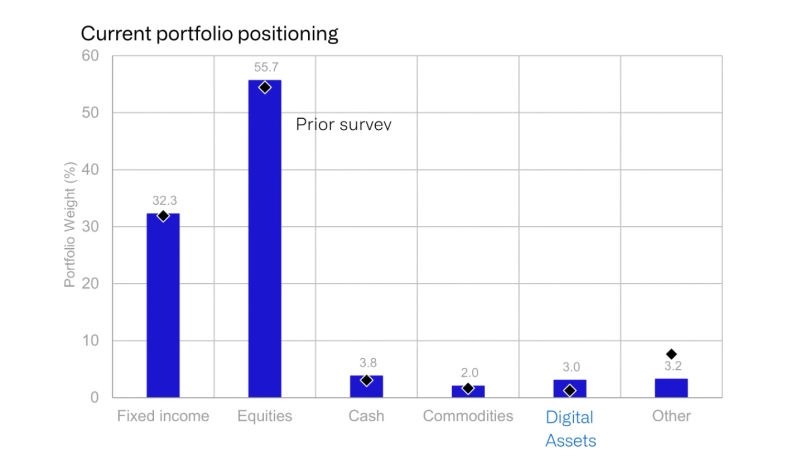 한편 포트폴리오 내 가상자산이 차지하는 비중은 지난 1월 1.3%에서 급증한 3.0%로 집계됐다. 이는 해당 설문이 시작된 이래 가장 높은 수치다. 지난 1월 허용된 비트코인 현물 상장지수펀드(ETF)를 통해 기관투자자들이 많이 유입된 영향으로 분석된다.