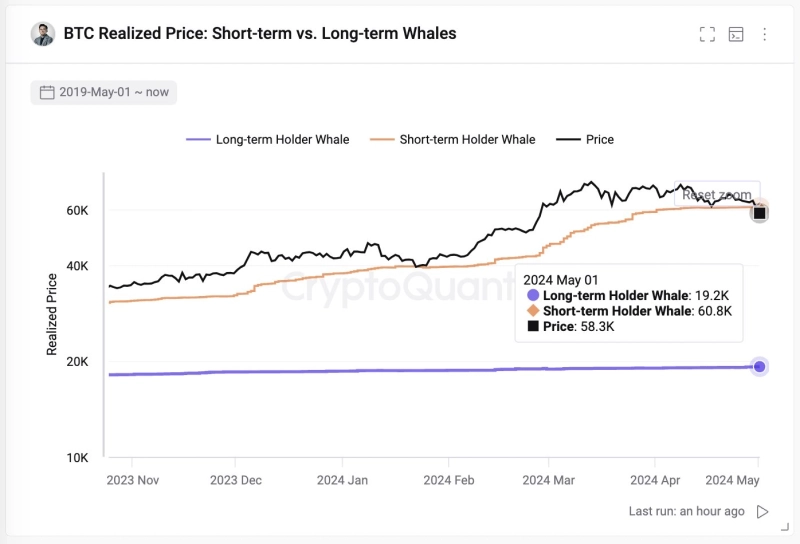 한편 크립토퀀트에 따르면 단기 고래 투자자의 평단가는 6만800달러로 추정된다.