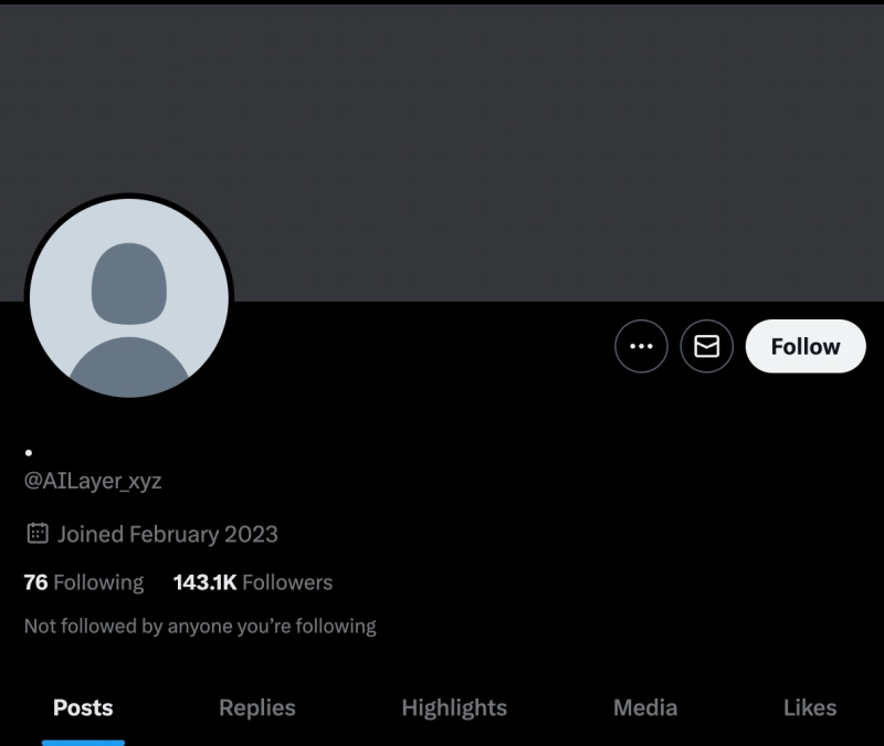 7일 AI레이어의 공식 X(트위터)에 따르면 AI레이어는 X계정의 이름을 '.'으로 변경, 모든 게시물을 전부 삭제한 것으로 나타났다.