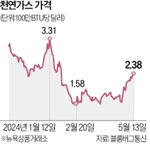 천연가스 가격은 작년 11월 이후 하락세를 나타내 지난 2월엔 2020년 9월 이후 29개월 만에 최저치를 기록했다. 미국 중앙은행(Fed)의 조기 금리 인하에 대한 기대가 사그라들고 세계적으로 예상보다 따뜻한 겨울이 찾아오면서 수요도 줄었기 때문이었다. 이후 반등하면서 줄곧 상승세를 그려왔다.
