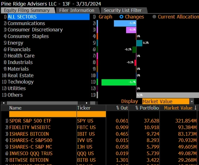 미국의 패밀리 오피스 파인릿지 어드바이저스에서 보유한 비트코인 현물 상장지수펀드(ETF) 물량이 2억달러를 돌파하며 최근 크게 증가한 것으로 나타났다. 패밀리 오피스란 초고액 자산가들의 자산관리 전담 업체를 뜻한다.