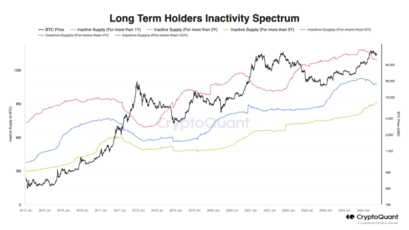 29일 가상자산(암호화폐) 분석 플랫폼 크립토퀀트(CryptoQuant)의 온체인드(onchained) 분석가는 퀵테이크 리포트를 통해 "비트코인을 3년 이상 보유한 투자자의 비율이 계속 증가하고 있다"면서 "장기 투자자의 보유 심리와 온체인 데이터는 강세 전망을 시사한다"라고 분석했다.