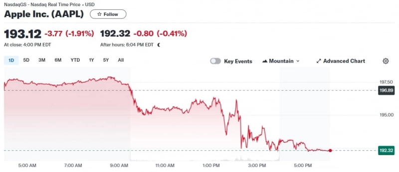 다만 이날 발표가 애플의 자체적인 생성형 AI 서비스 개발 계획이 아닌 기존 스마트 기능의 업그레이드 수준에 머물렀다는 지적에 발표 이후 애플 주가는 1.91% 하락 마감했다.