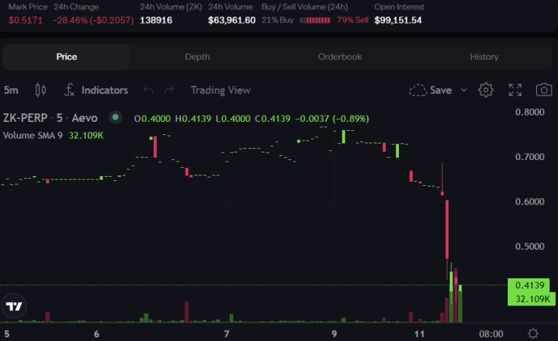 한편 ZK토큰은 이날 오후 4시 25분 현재 가상자산 무기한 선물 시장 에이보기준 전일대비 27.80% 급락한 0.52달러에 거래되고 있다. 다만 같은 시간 팬케이크스왑에서는 0.67달러 수준을 유지 중이다.