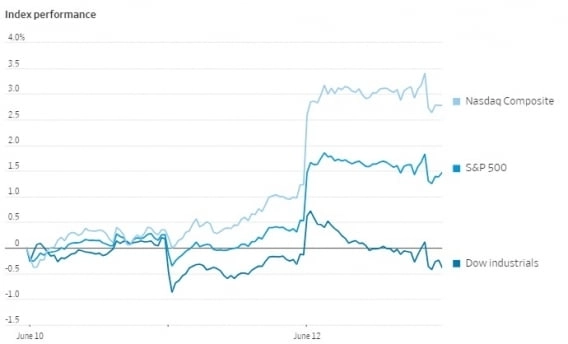 S&P 500 지수와 나스닥 지수는 사상 최고치를 경신했다. 점도표 상 금리 전망은 예상보다 매파적이었지만 5월 CPI가 둔화하고 파월 의장의 발언도 이전과 크게 달라진 게 없게 없었기 때문이다.