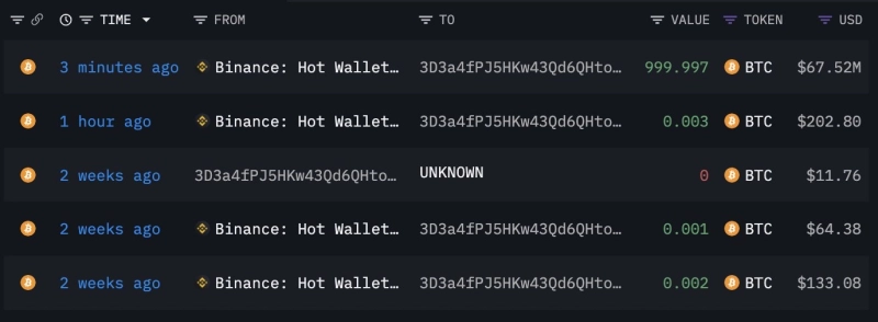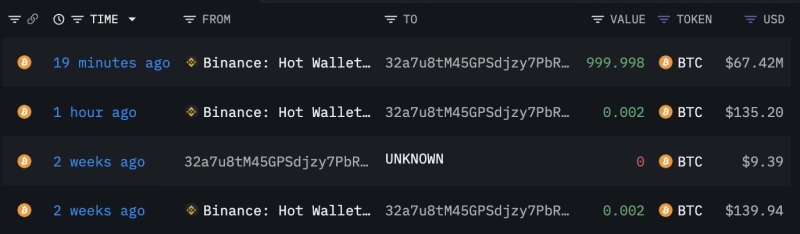 12일(현지시각) 룩온체인은 X를 통해 "2개의 신규 고래 주소가 20분 동안 바이낸스에서 2000BTC를 출금했다"라며 "고래들이 비트코인을 매집 중"이라고 밝혔다.