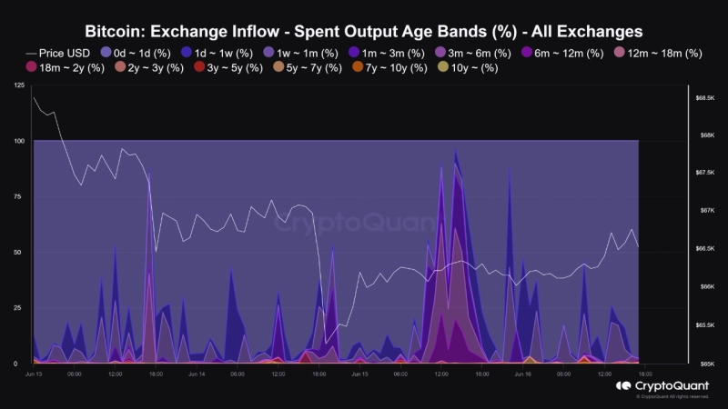 17일 가상자산(암호화폐) 분석 플랫폼 크립토퀀트(CryptoQuant)의 XBT매니저(XBTManager) 분석가는 퀵테이크 리포트를 통해 "비트코인을 1개월에서 3개월 보유한 투자자, 3개월에서 6개월 보유한 투자자, 6개월에서 1년 보유한 투자자 모두는 보유한 물량을 거래소로 일부 입금했다"면서 "비트코인은 다시 하락장으로 진입할 수 있을 것"라고 밝혔다.