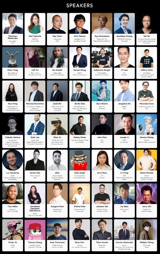 주요 연사로는 ▲모 샤이크 앱토스(APT) 최고경영자(CEO) ▲얏 시우 애니모카 브랜즈 CEO ▲레이 찬 밈랜드 CEO ▲세바스찬 보르제 더 샌드박스 공동 설립자 ▲요요 양 반다이 남코 CVC 대표 ▲겐키 오다 SBI 홀딩스 전무이사 ▲와타나베 타카후미 소니 뱅크 최고재무책임자(CFO) ▲개비 디존 YGG 공동 설립자 ▲라이언 킴 해시드 공동창립자 겸 파트너 등 글로벌 블록체인 전문가 다수가 참여한다. 연사들은 웹3 생태계, 블록체인·인공지능(AI) 기술, 게임, NFT, 탈중앙화 금융(디파이), 규제 등 다양한 주제를 심층적으로 풀어낼 예정이다.