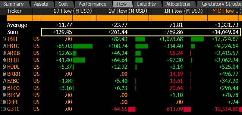 - 에릭 발추나스 블룸버그 선임 ETF 애널리스트는 비트코인 ETF가 올 들어 146억달러 순유입을 기록했다고 전했다.