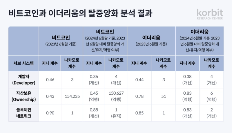 - 비트코인과 이더리움 모두 자산 보유 측면에서는 탈중앙화가 역행했음을 지적했다.