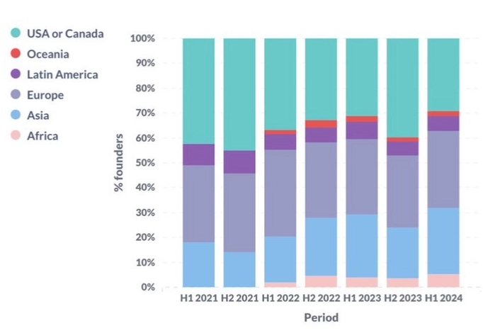 올해 상반기 아프리카와 아시아에서 시작된 가상자산(암호화폐) 스타트업이 미국과 캐나다 스타트업 수를 넘어선 것으로 나타났다.