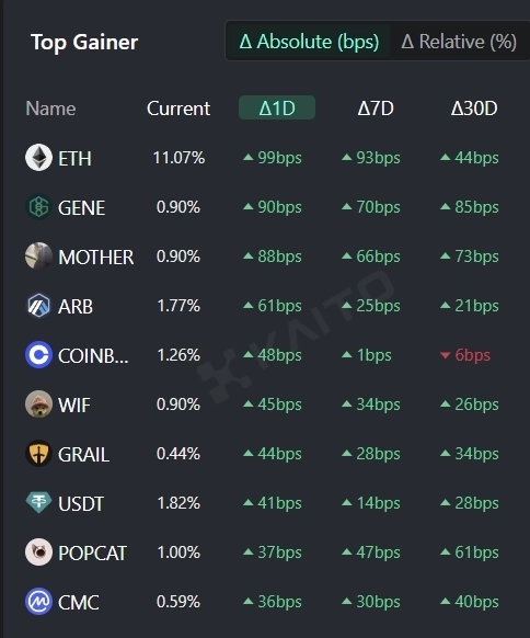 이밖에도 투자자들은 도그위프햇(WIF), 카멜롯 토큰(GRAIL), 테더(USDT), 팝캣(POPCAT), 코인마켓캡 등에 관심을 갖는 것으로 나타났다.
