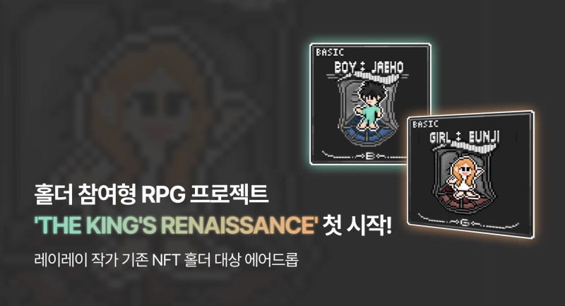 아트테인먼트 기업 레이빌리지는 업비트NFT에서 새로운 RPG 형식의 픽셀 아트 NFT 프로젝트 <더 킹스 르네상스(THE KING'S RENAISSANCE)>를 선보인다고 24일 밝혔다.