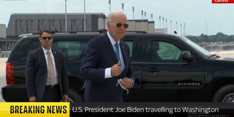 - 스카이 뉴스는 바이든 대통령이 델라웨어에서 에어포스 원에 탑승하여 워싱턴 DC로 돌아가는 모습을 공개했다고 전했다.