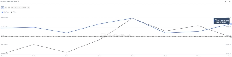 24일 블록체인 분석 회사 인투더블록(IntoTheBlock)은 X(옛 트위터)를 통해 "이더리움 고래 투자자들은 전날 이더리움 시세가 하락했음에도 불구하고 11만2900 ETH를 축적했다"라고 전했다. 이는 3억9000만달러(약 5400억원) 규모다.