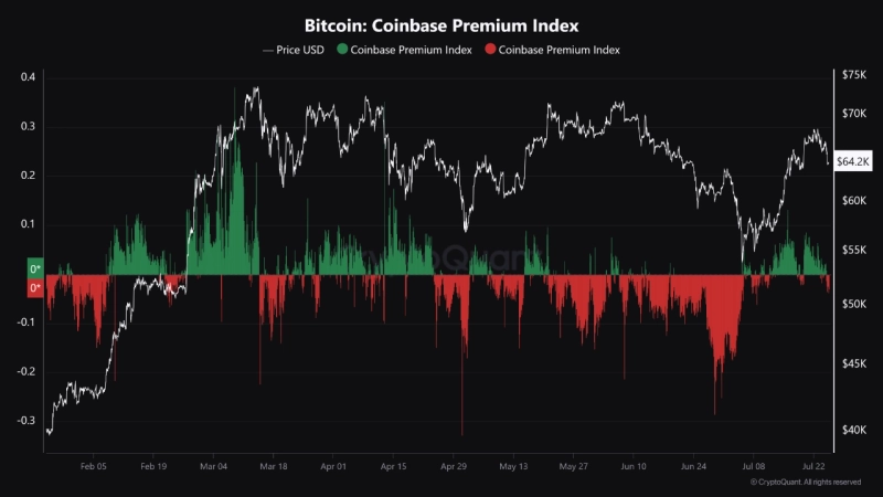 25일 가상자산 분석 플랫폼 크립토퀀트(CryptoQuant)의 아이티 테크(IT Tech) 분석가는 퀵테이크 리포트를 통해 "코인베이스 프리미엄 지수가 음수로 전환됐고 이는 미국 투자자들의 수요가 감소하고 있음을 나타낸다"라고 밝혔다.