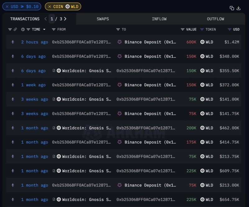 - 앰버그룹 주소로 총 415만 WLD(약 1708만 달러 상당)가 이체되었으며, 대부분이 거래소로 즉시 입금됐다고 전했다.