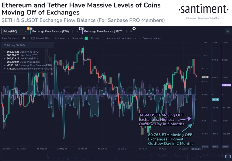 30일(현지시각) 센티멘트는 X를 통해 "가상자산 거래소에서 8만800 ETH가 유출됐다"라며 "2개월 만에 최대 유출액"이라고 밝혔다. 이어서 "이는 이더리움에 대한 매도 압력이 둔화됐음을 의미한다"라고 설명했다.