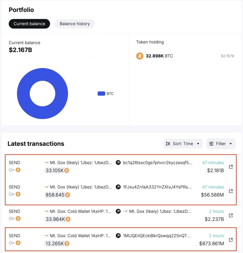 - 마운트곡스가 최근 4만5511BTC를 3개의 새로운 지갑에 이체한 것으로 나타났다고 전했다.