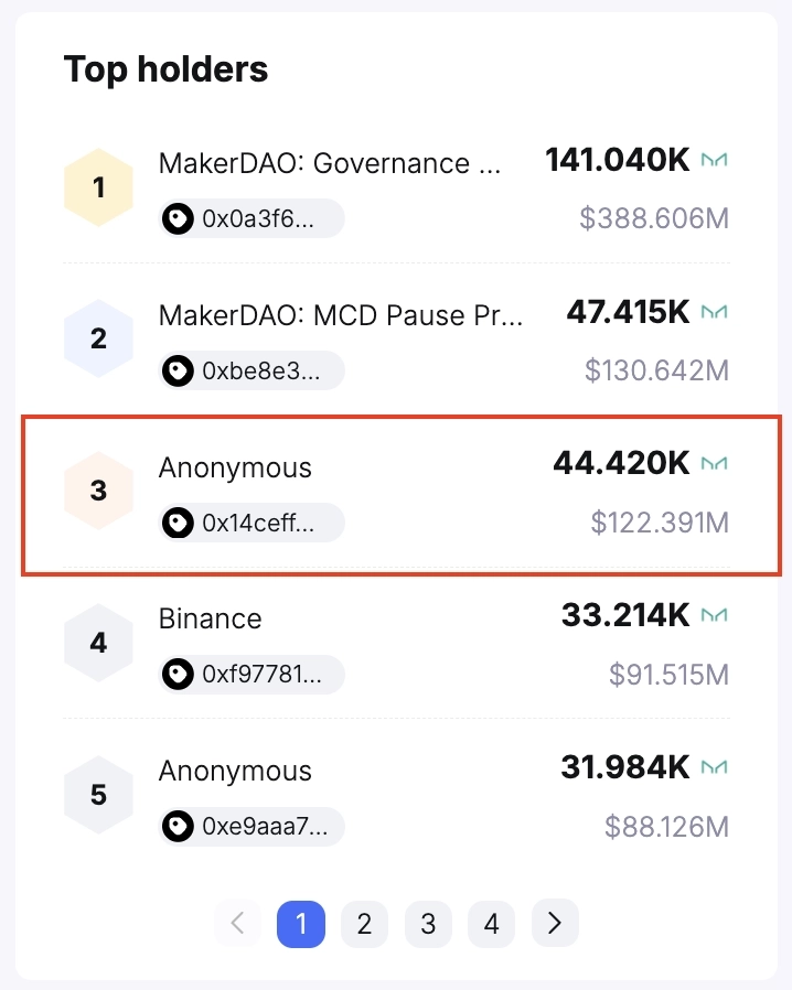 - 해당 주소는 현재 4만5109MKR(약 1억2400만 달러)을 보유중인 것으로 나타났다.