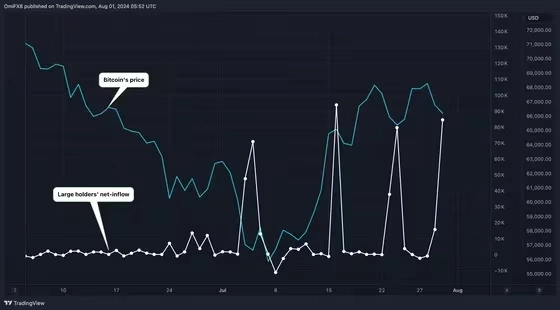 - 비트코인 고래들, 7월에 약 54억 달러어치 비트코인을 매수했다고 밝혔다.
