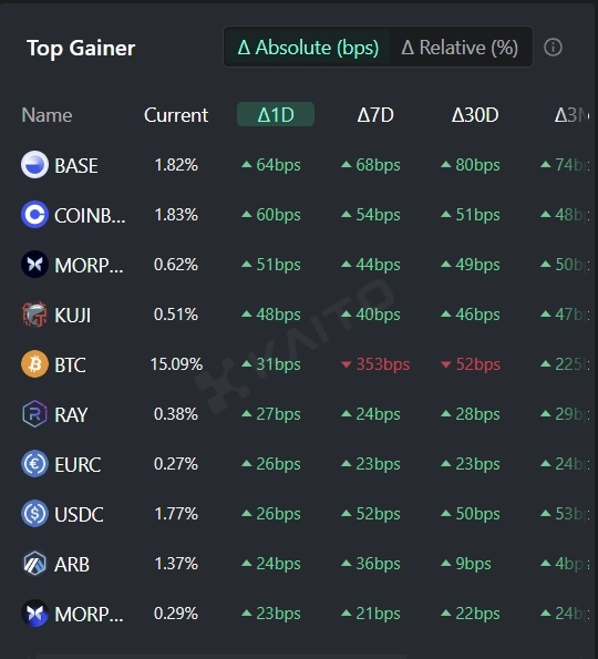 이어 탈중앙화 대출 프로토콜 개발사 몰포는 대규모 투자 유치에 성공하면서 순위에 올랐다. 전날 모르포는 X(트위터)를 통해 "모르포가 리빗캐피털이 주도한 신규 투자 라운드에서 5000만달러를 조달했다"고 밝혔다. 해당 투자 라운드에는 안데르센 호로위츠(a16z), 코인베이스 벤처스, 판테라캐피털 등이 참여한 것으로 전해졌다.
