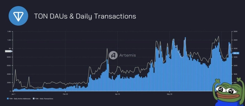 - 톤코인의 일일 활성 사용자(DAU)가 전년 대비 10배 증가했다고 DWF 벤처스가 전했다.
