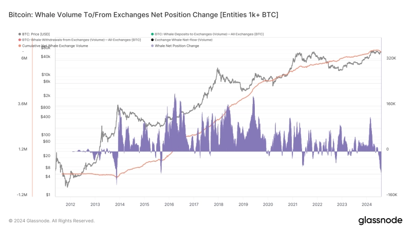 차트에 따르면 고래들은 2015년 이후 가장 많은 비트코인을 거래소 외부로 옮겼다. 지난 30일 동안 고래들의 거래소 잔고에서는 약 6만4000개의 비트코인이 외부로 이체됐다. 앞서 주기영 크립토퀀트 역시 X(트위터)를 통해 "올 들어 고래들은 한주 평균 약 10만개의 비트코인을 매집하고 있다"고 말하기도 했다.