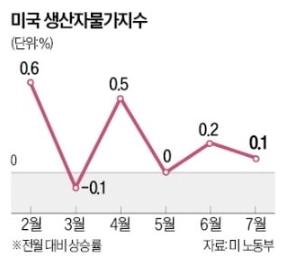 - 미국의 7월 PPI 상승률이 전월 대비 0.1%로 둔화되었다고 전했다.
