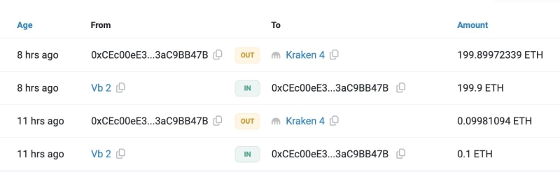 - 비탈릭 부테린 추정 주소가 200ETH를 중앙화거래소 크라켄으로 이체했다고 밝혔다.