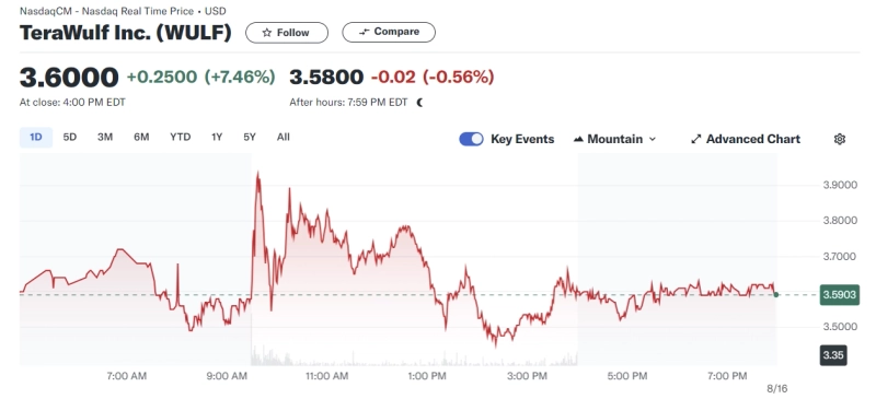 15일(현지시간) 테라울프는 간밤 나스닥 시장에서 전일대비 7.46% 상승한 3.60달러로 장을 마감했다. 장 초반 테라울프는 전일대비 18% 급등한 3.965달러로 장을 시작했으나 상승폭을 소폭 줄인 채 장을 마쳣다.