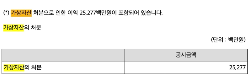 - 암호화폐 수이를 개당 1490원에 판매해, 취득원가 1억원 대비 약 252배의 차익을 기록했다고 전했다.