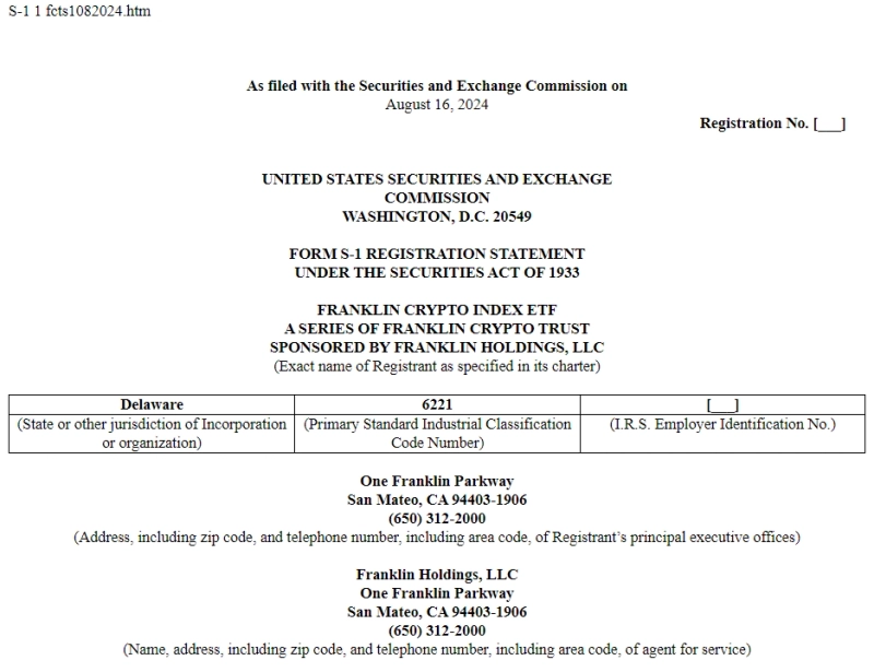 프랭클린템플턴이 새로운 가상자산(암호화폐) 인덱스 ETF에 대한 S-1(증권신고서)를 제출한 것으로 알려졌다.
