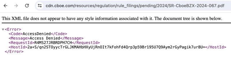 - 이와 관련된 문서인 SR-CboeBZX-2024-066 및 SR-CboeBZX-2024-067에 대한 접근이 더 이상 불가능하다고 밝혔다.