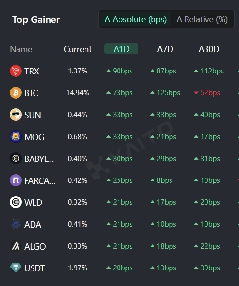 - 트론(TRX): 트론은 최근 네트워크 수익이 이더리움을 넘어서며, 90일 수익이 약 4억3000만달러로 이더리움의 약 3억6000만달러보다 높았다고 밝혔다.